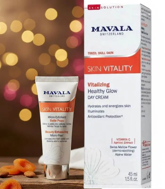 - ينشط ويجدد البشرة: غني بمستخلص المشمش السويسري الغني بـ بروفيتامين A ومضادات الأكسدة التي تنعش البشرة الباهتة وتعيد إليها الحيوية.